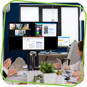 In a corporate meeting room environment, hosting an ever-changing roster of presenters, KLIKLink AV maintains meeting flow by ensuring that all participants can connect to the screen quickly, from any device, every time.
