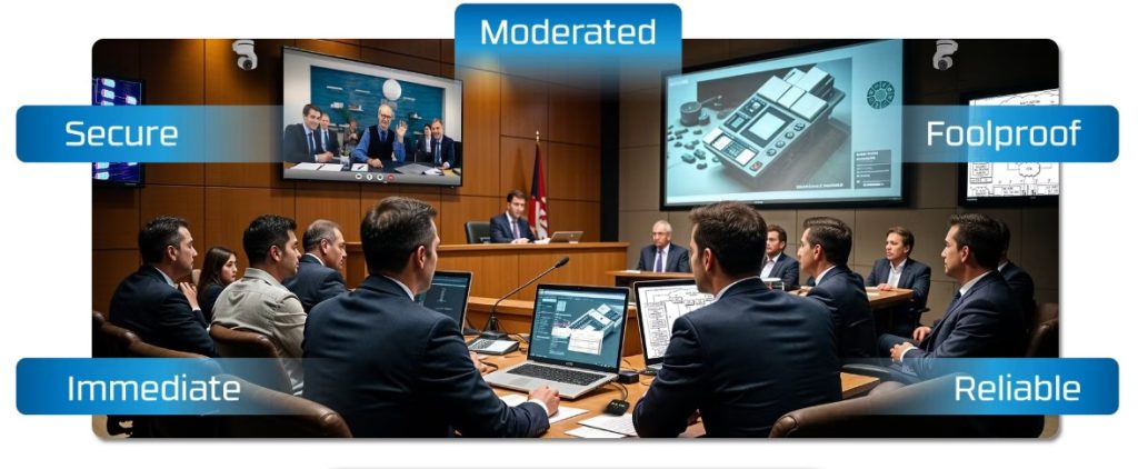 Full moderation tools accessible directly from the room’s touchscreen or mouse—no PC needed.