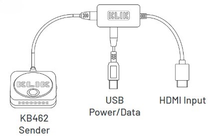 However, when using the KLIKLink AV with the supplied HDMI adapter, power must be supplied through the adapter itself. Simply connect the supplied power cable between the HDMI adapter and any USB power source, then plug the KLIKLink AV into the adapter. Power from the USB power source will now supply both the HDMI adapter and the KLIKLink AV.