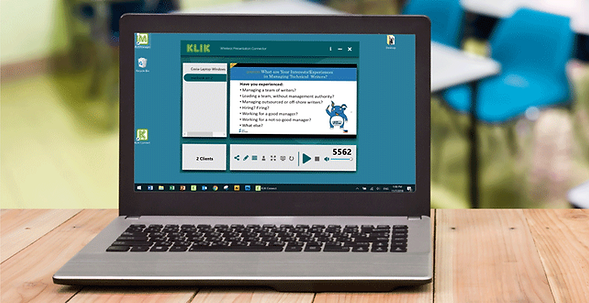KLIK allows for easy and seamless wireless presentations from PCs, tablets or even mobile devices, while also allowing screen sharing to the audience.