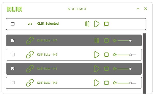 KLIK Multicasting is designed to offer users the greatest flexibility when sharing content across several screens. To do so, a user selects the specific screens to which they want to share content. Unlike systems where multicasting shares only the contents of one screen, KLIK Multicasting allows for complete customization of what is displayed on every screen.