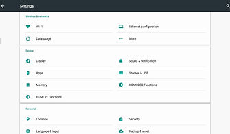 Select Wi-Fi or Ethernet to complete the network connectivity settings. Also configure Time and Location and any other settings required, then use the Menu icon to back out of the Settings page and return to the Standby screen.